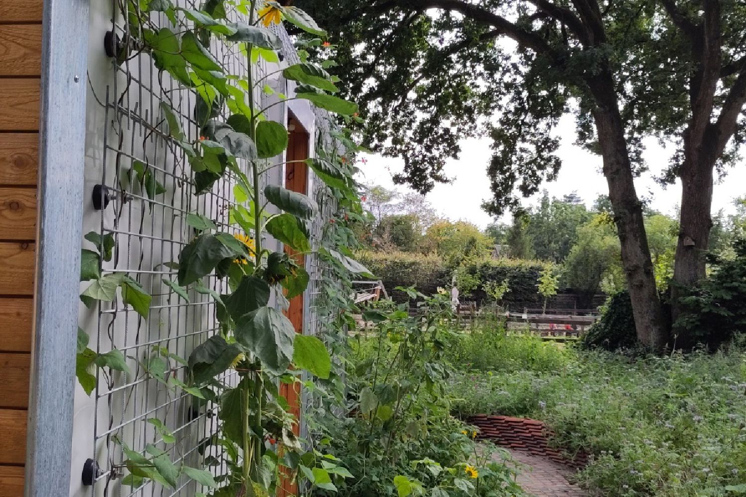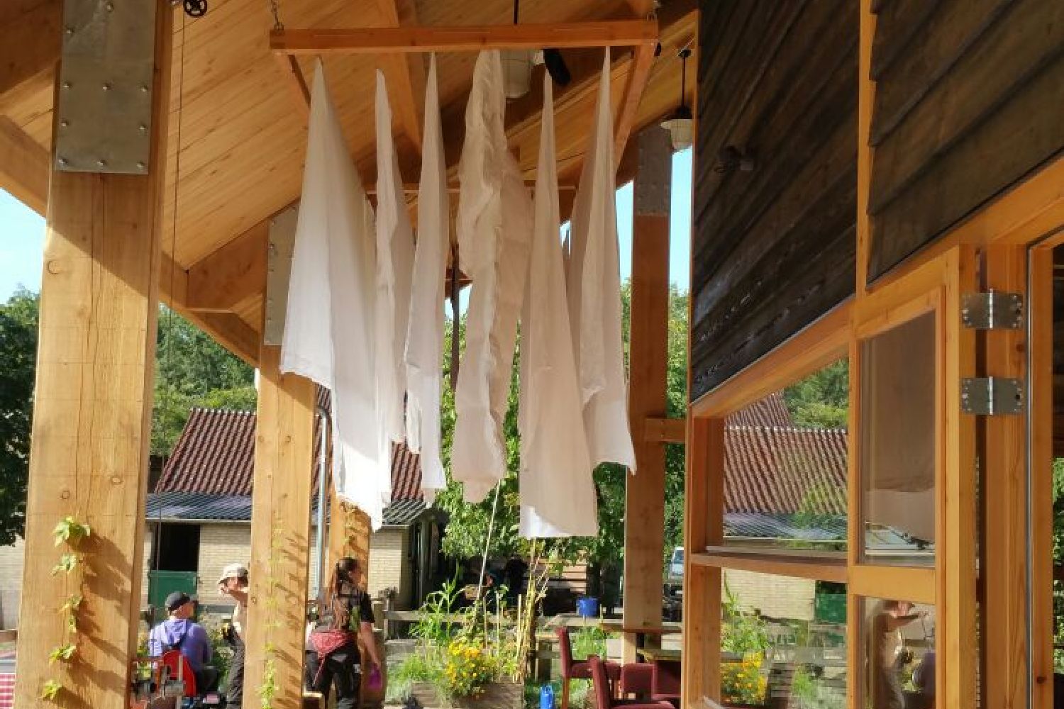 Breakfast and a vegan evening meal are provided on request by the participants of De Roek Zorgbedrijf. They also serve coffee or tea with homemade apple pie on the terrace of the reception building. There is also an organic shop and a media library with books and games. If you cook for yourself, you can pick fresh herbs from our herb garden.